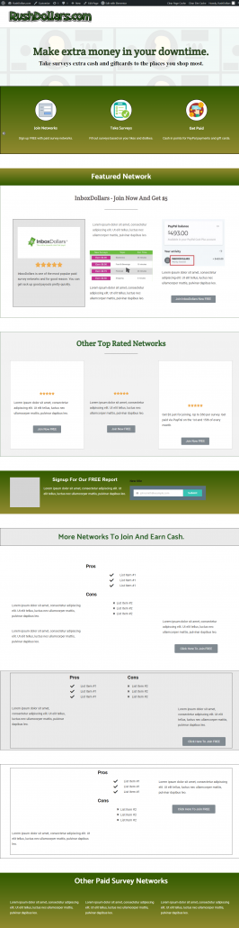 RushDollars is a hybrid website that primarily serves as a landing page for lead capturing. Email addresses collected go automatically into an Aweber mail list.
